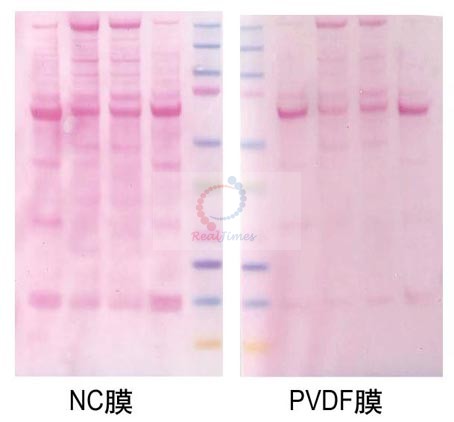 NC膜對(duì)比PVDF膜,PVDF膜麗春紅染色靈敏度低于NC膜